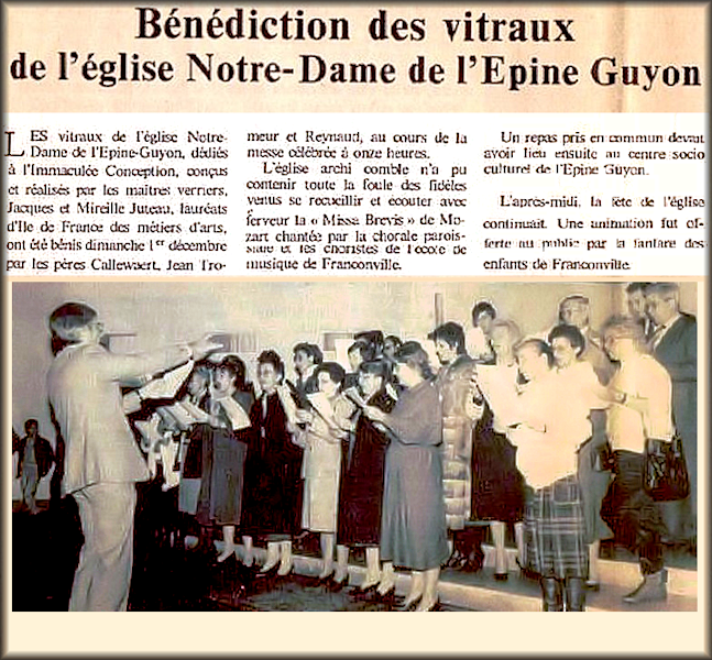 1 décembre 1985 : Bénédiction des vitraux, œuvre des verriers Jacques et Mireille Juteau. Ont été bénis par les pères P Callewaert curé de la paroisse, Jean Tromeur et Raymond.
