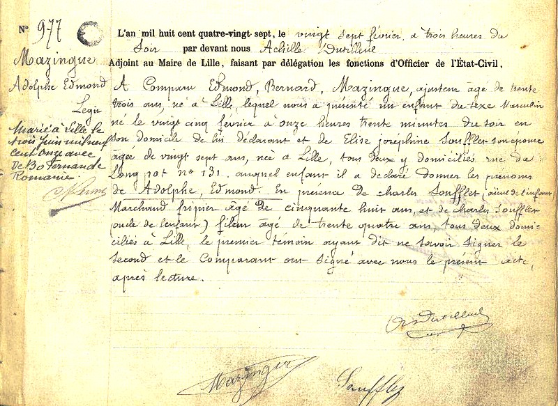 Adolphe Edmond Mazingue, né le 25 février 1887 et son épouse Fernande, née le 6 décembre 1890, tous les deux à Lille (Nord), demeurent 15 rue Pasteur à Franconville. Tous deux s'engagent très tôt dans la résistance, ils procurent des faux papiers et font partie du réseau "Le groupe Jacquet" mis en place par Robert Décamps, responsable majeur de la Résistance du Val-d'Oise. Il réside à Saint Leu la Forêt, 1 rue de Chanzy. "Le groupe Jacquet" était une organisation de filières d'évasion comprenant l'accueil, l'hébergement, le convoiement et la remise à des passeurs entre la France, la Belgique et les Pays-Bas.