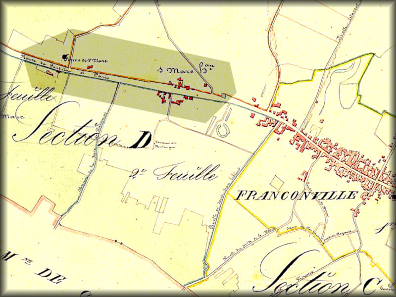 Le village est bâti en totalité le long de la route qui mène de Paris à Rouen. Trois ou quatre maisons s’élèvent à environ 150 mètres de la route sur la ruelle du moulin (actuellement rue de la Station). Un autre hameau plus important est celui de St Marc, où se trouve une ferme assez florissante. Petit à petit ce hameau s’agrandit et se rapproche pour faire un quartier du village.